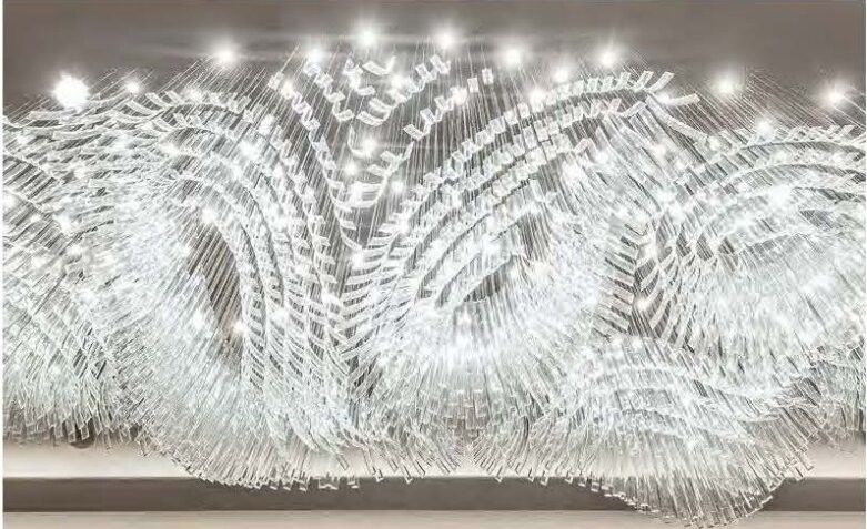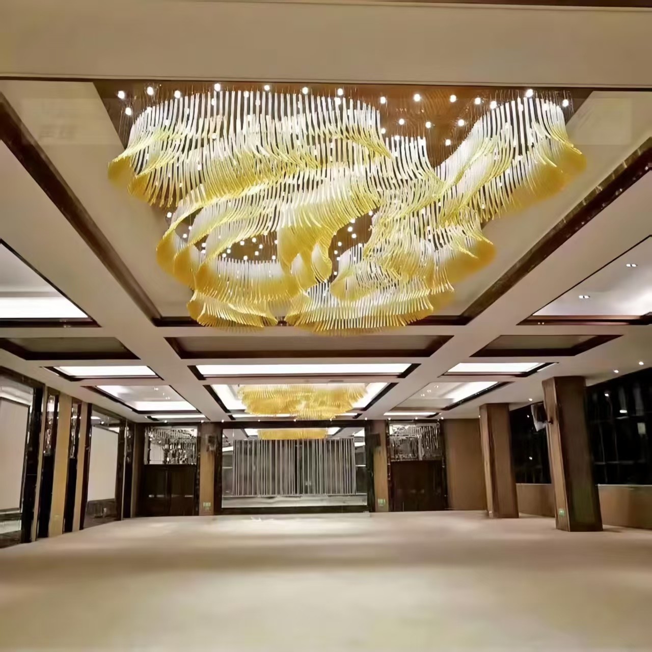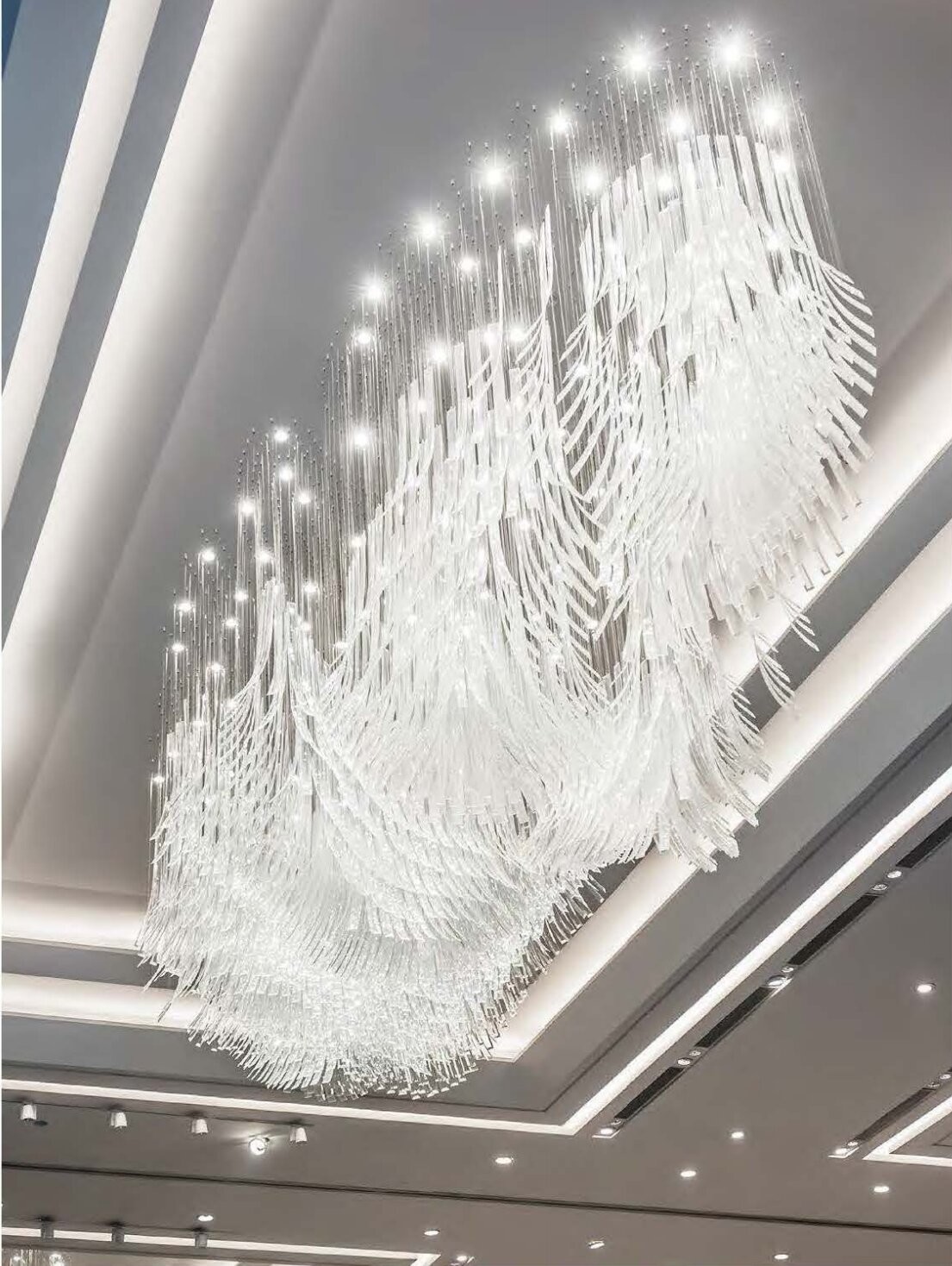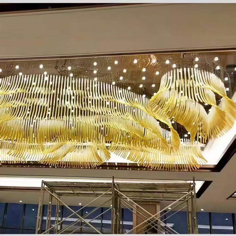 3, Chiếc đèn chùm trong sảnh khách sạn với ống kính thông minh cong
