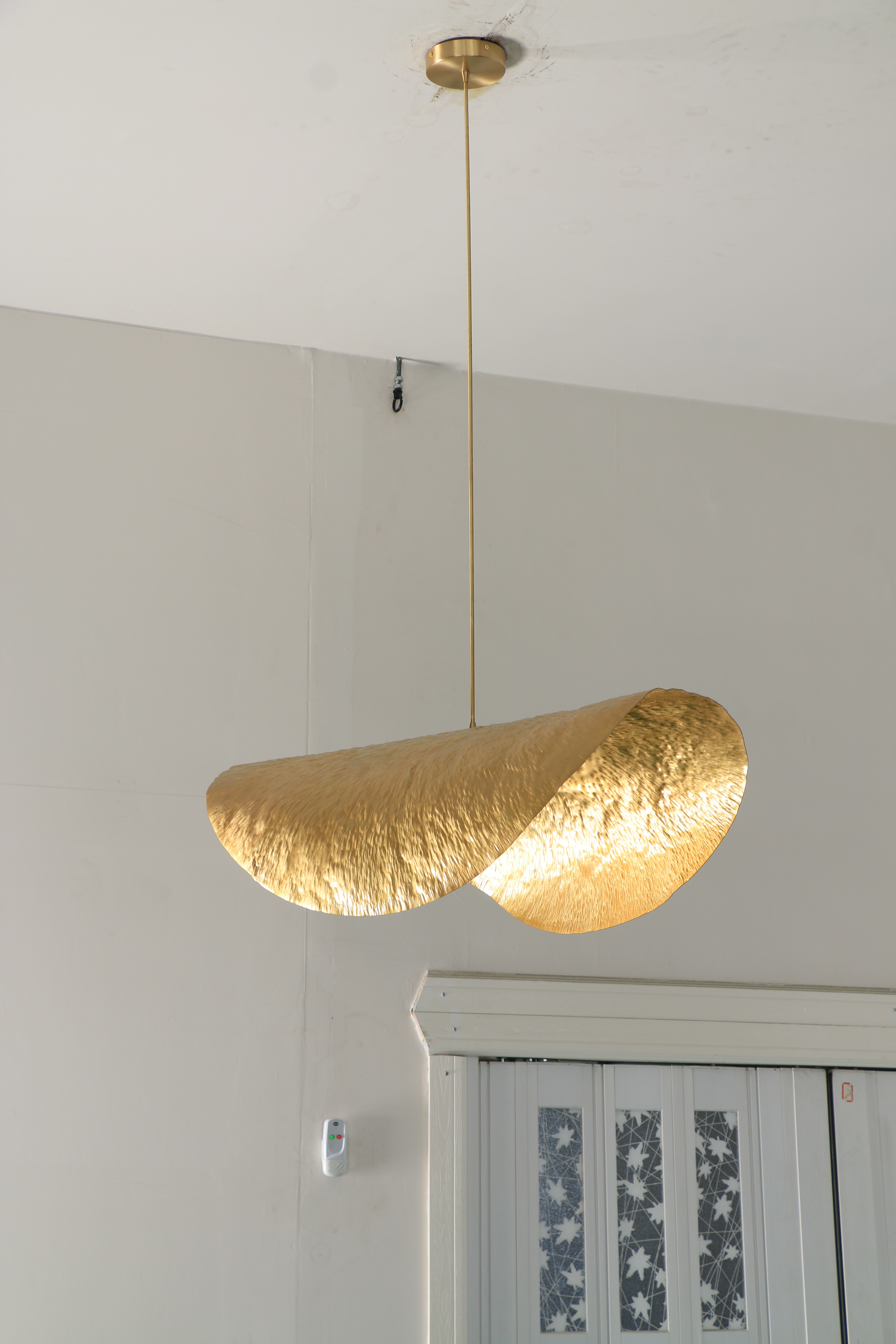 Có sẵn trong kết thúc đồng hoặc vàng đồng, đèn treo này tỏa ra một cảm giác sang trọng hậu hiện đại, hoàn hảo cho biệt thự, phòng khách hoặc phòng ăn.Thiết kế lá sen độc đáo thêm sự thanh lịch và sáng tạo cho bất kỳ không gian nào.